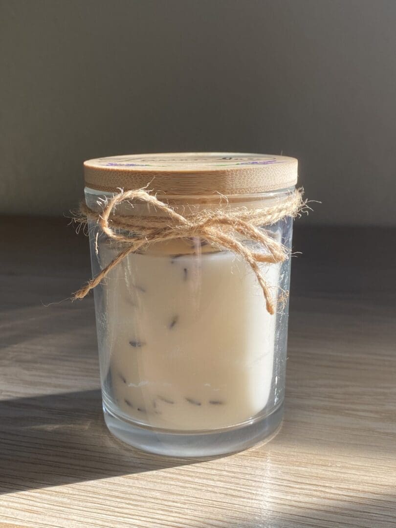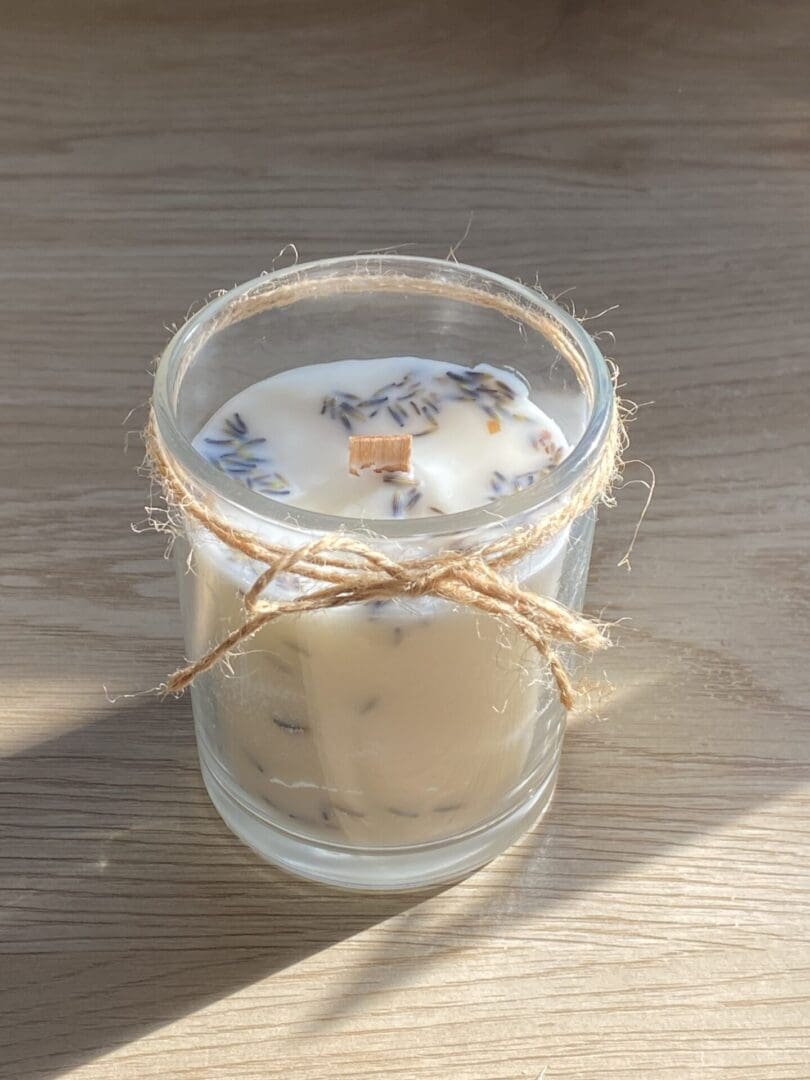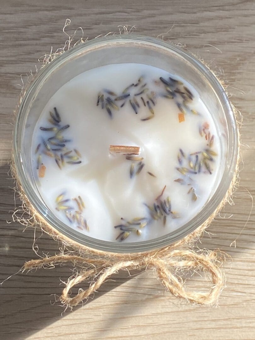 Hand poured with natural soy wax and paraffin blend, infused with real dried lavender, this candle offers a soothing aroma perfect for relaxation. The wooden wick provides a gentle cracking ambiance, while the rustic twine and hand painted lid add an artisanal touch